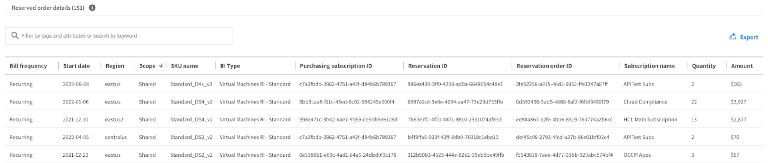 - Used hours: Number of reserved hours used for the specific reserved instance.