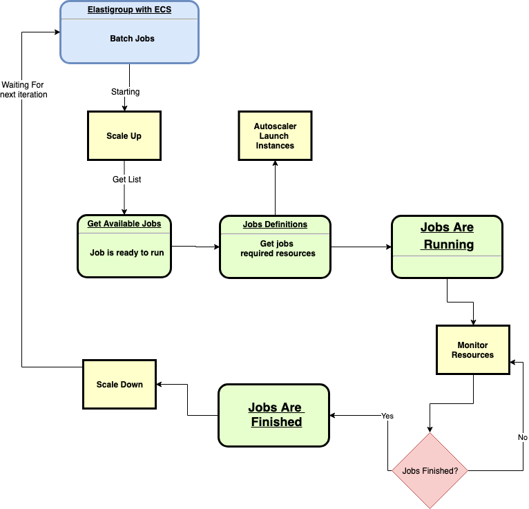 Once created, AWS Batch jobs will be handled by Elastigroup.