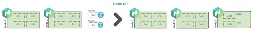 Nomad Autoscaler periodically checks whether there are Jobs that have queued allocations and if there is enough capacity to schedule these allocations. If there isn't enough capacity, a scale up event will be triggered.