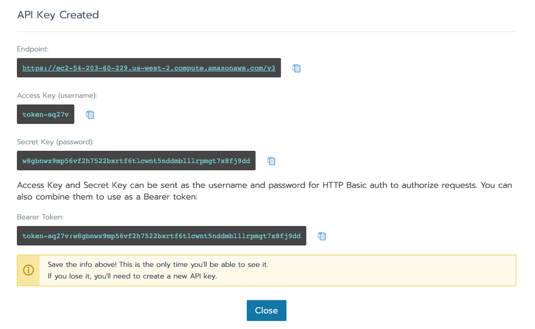 - Perform the steps on the Rancher API Keys page.