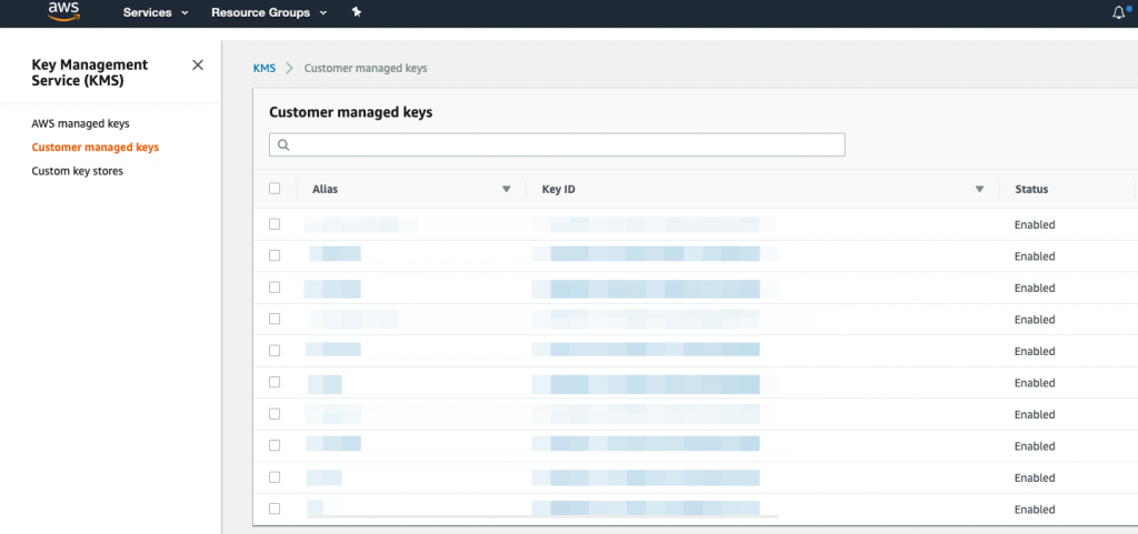 Sign in to your AWS console and navigate to the Key Management Service (KMS) console.