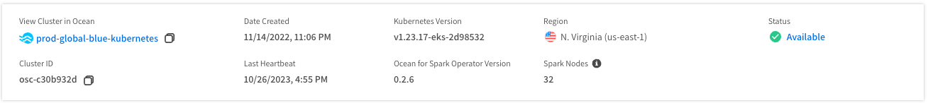 • Last Heartbeat: The last heartbeat or the Ocean Spark controller.